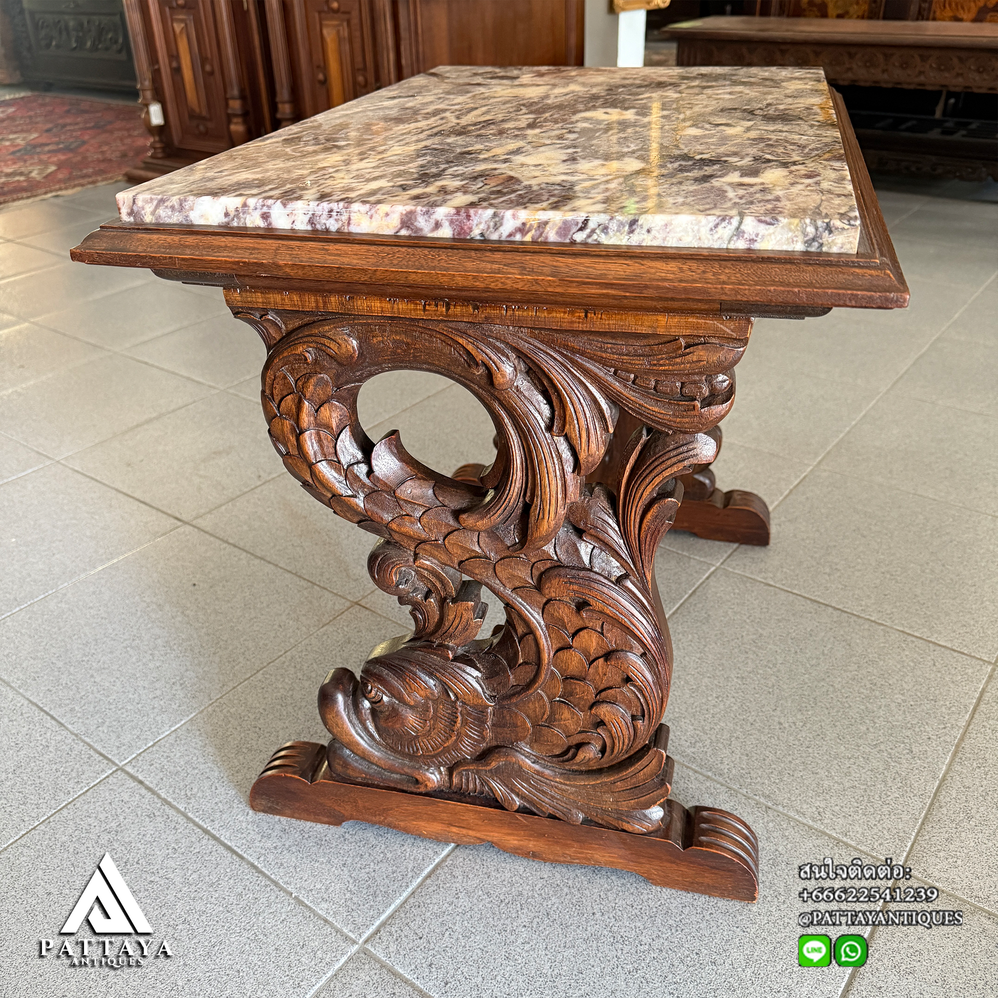 โต๊ะข้างแกะสลักรูปปลาโลมา ศตวรรษที่ 19สนใจสินค้าสอบถามเพิ่มเติมได้เลยครับ