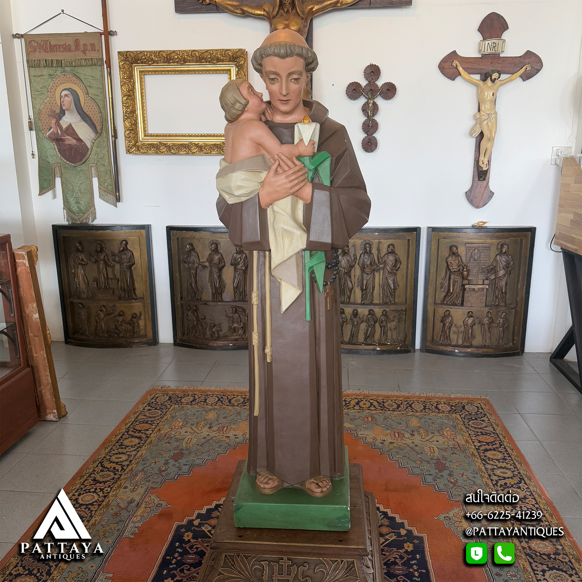 นักบุญแอนโทนีกับพระกุมารเยซู ทำจากปูนปลาสเตอร์ สไตล์อาร์ตเดโคสนใจติดต่อได้เลยครับ